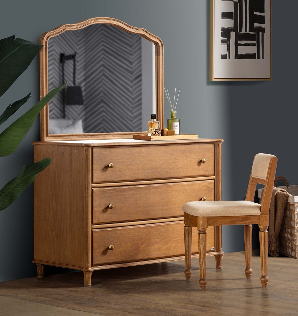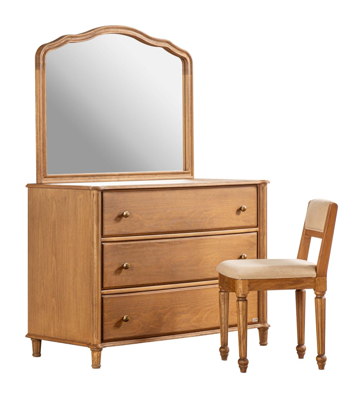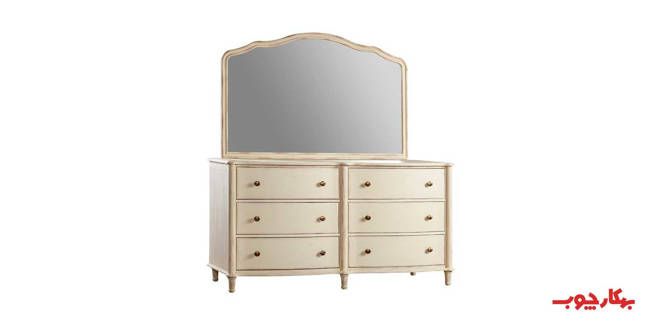 سرویس شامل(تخت در سایز۱۶۰، میز آرایش، قاب آینه، عسلی و پاتختی) است.
