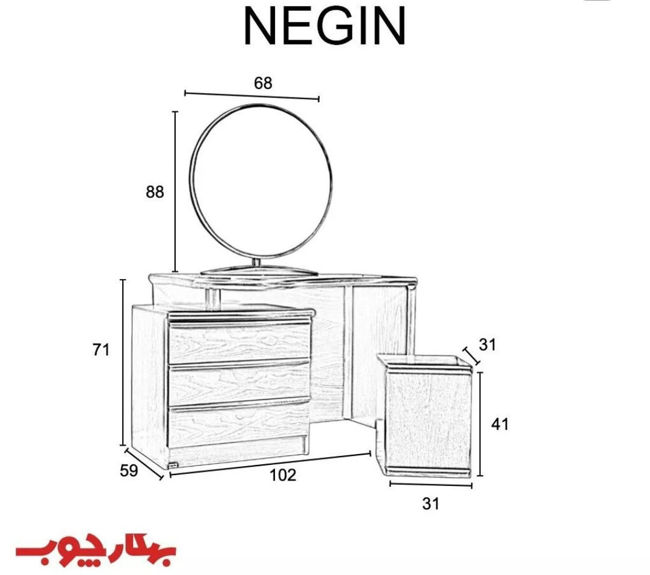 میز آرایش دالبری صدف+3 کشو نگین
